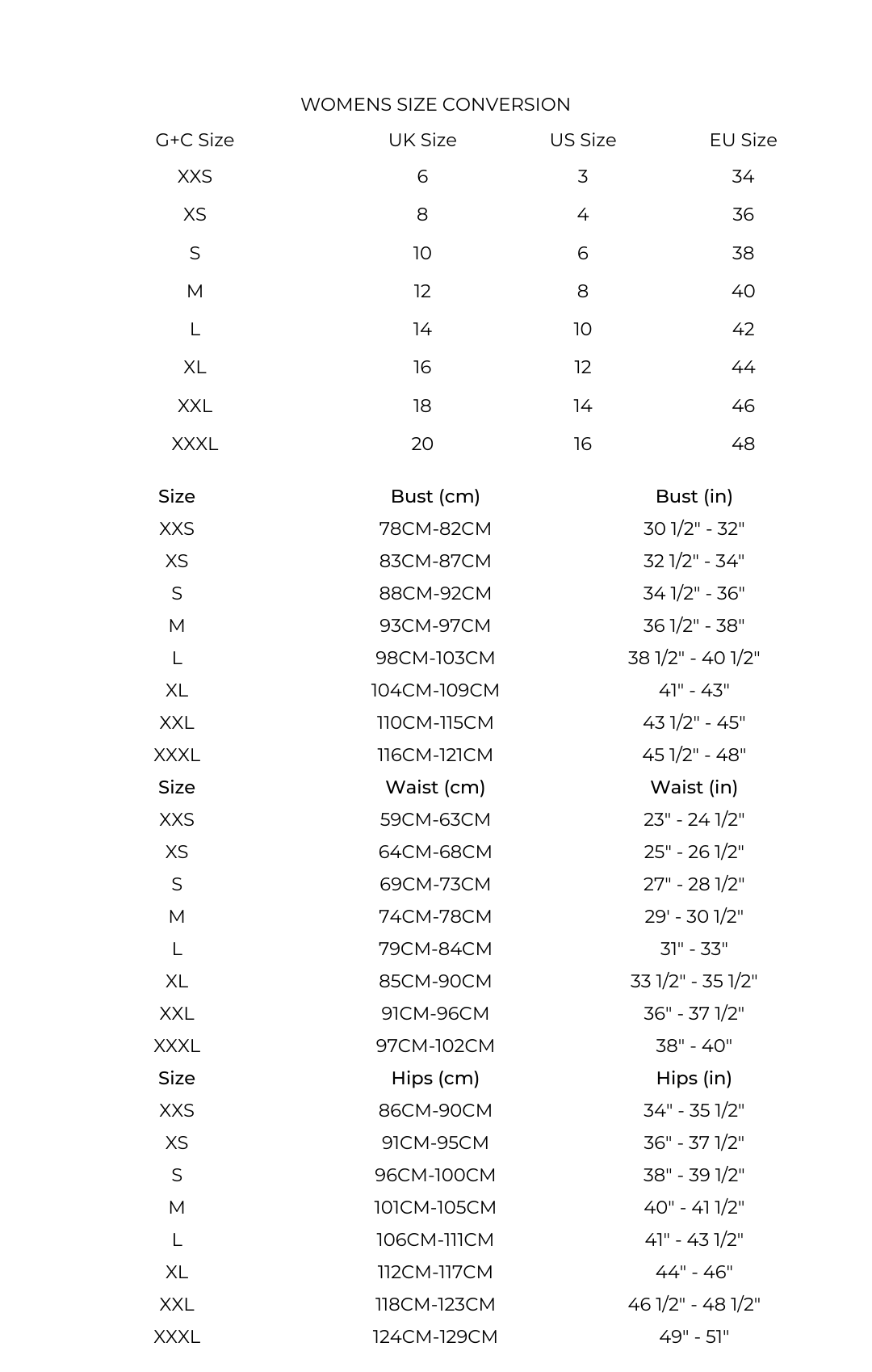 GPC Size Guide